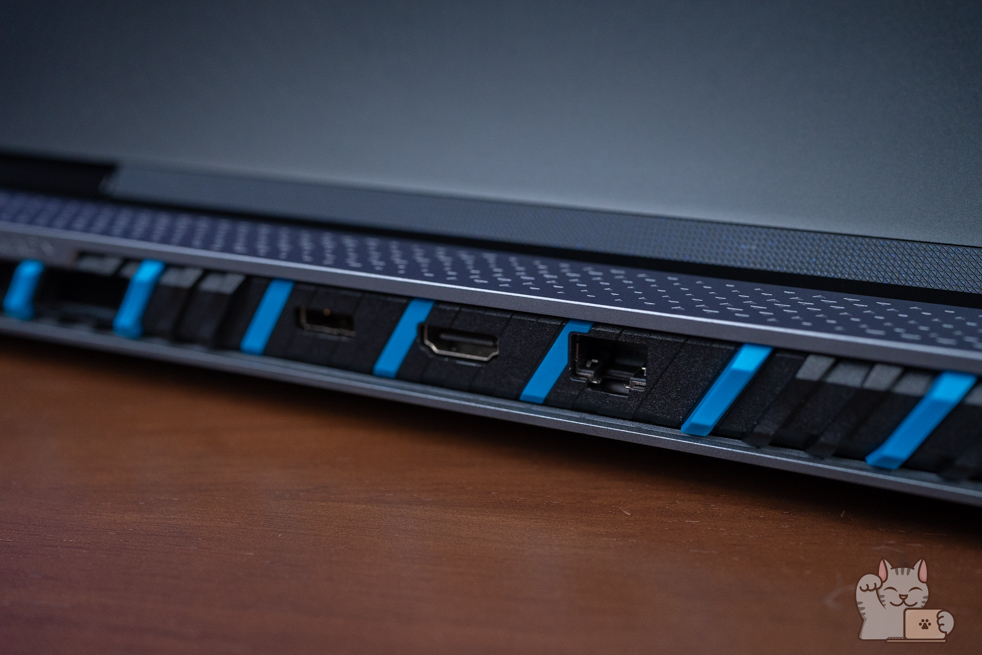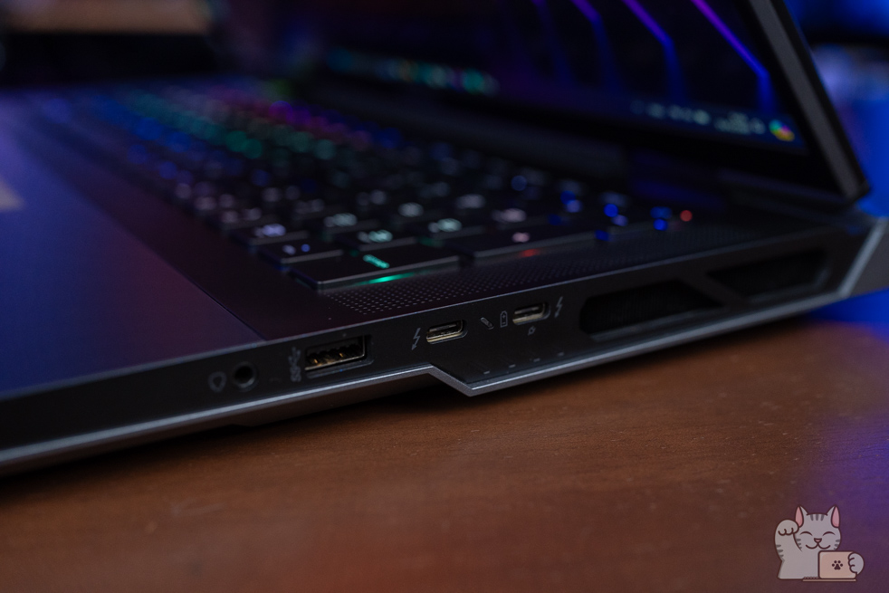 สำหรับ MSI Titan 18 HX จัดว่าเป็น Gaming Notebook หน้าจอ 18″ ที่มีพอร์ตการเชื่อมต่อที่ครบครันที่สุดรุ่นหนึ่งเลยทีเดียว ซึ่งมีทั้ง 3 x USB 3.2 Type-A, HDMI 2.1 , LAN Killer 2.5Gbps, SD Card Reader, AUX 3.5 mm อีกทั้งมีพอร์ต Thunderbolt 4 อยู่อีก 2 พอร์ต ซึ่งรองรับการโอนถ่ายข้อมูลที่ดีที่สุด พร้อมสนับสนุนการต่อหน้าจอมาตรฐาน DisplayPort ด้วย พร้อมรองรับชาร์จไฟ PD 3.1 (140W ได้อีกด้วย )ช่องเสียบอแดปเตอร์เป็นแบบสี่เหลี่ยม Block B ตามมาตรฐานของ MSI