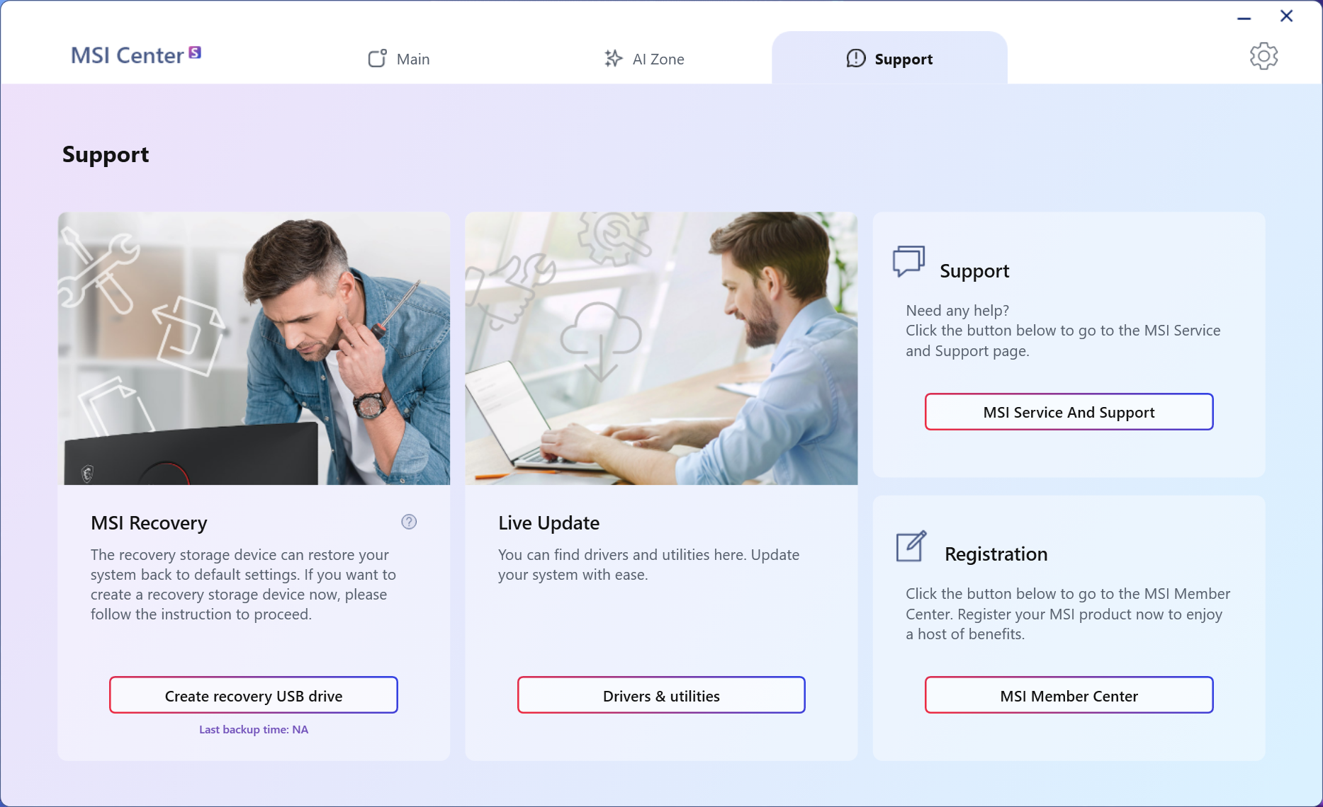 MSI Center S เป็นโปรแกรมสำเร็จรูปที่ออกแบบมาเป็นอย่างดี ซึ่งเป็นโปรแกรมที่ต่อยอดมาจากรุ่นก่อนๆ คือ ใช้งานสะดวก สามารถช่วยเหลือ จัดการการปรับแต่งตั้งค่า MSI Notebook ได้อย่างลงตัว พร้อมได้ธีมที่เข้ากับตัวเครื่อง ถือว่าเป็นอีกหนึ่งไฮไลน์ของทาง MSI ซึ่งแบ่งเป็นหมวดหมู่ต่างๆ เพื่อให้ง่ายต่อการใช้งาน โดยหน้าเมนูต่างๆ แบ่งตามลักษณะการใช้งานที่ชัดเจน รวมไปถึงการอัปเดทซอฟต์แวร์ต่างๆ และสามารถดูสภานะการทำงานได้ ซึ่งสามารถจัดการได้ง่ายยิ่งกว่าเดิมอีกด้วย