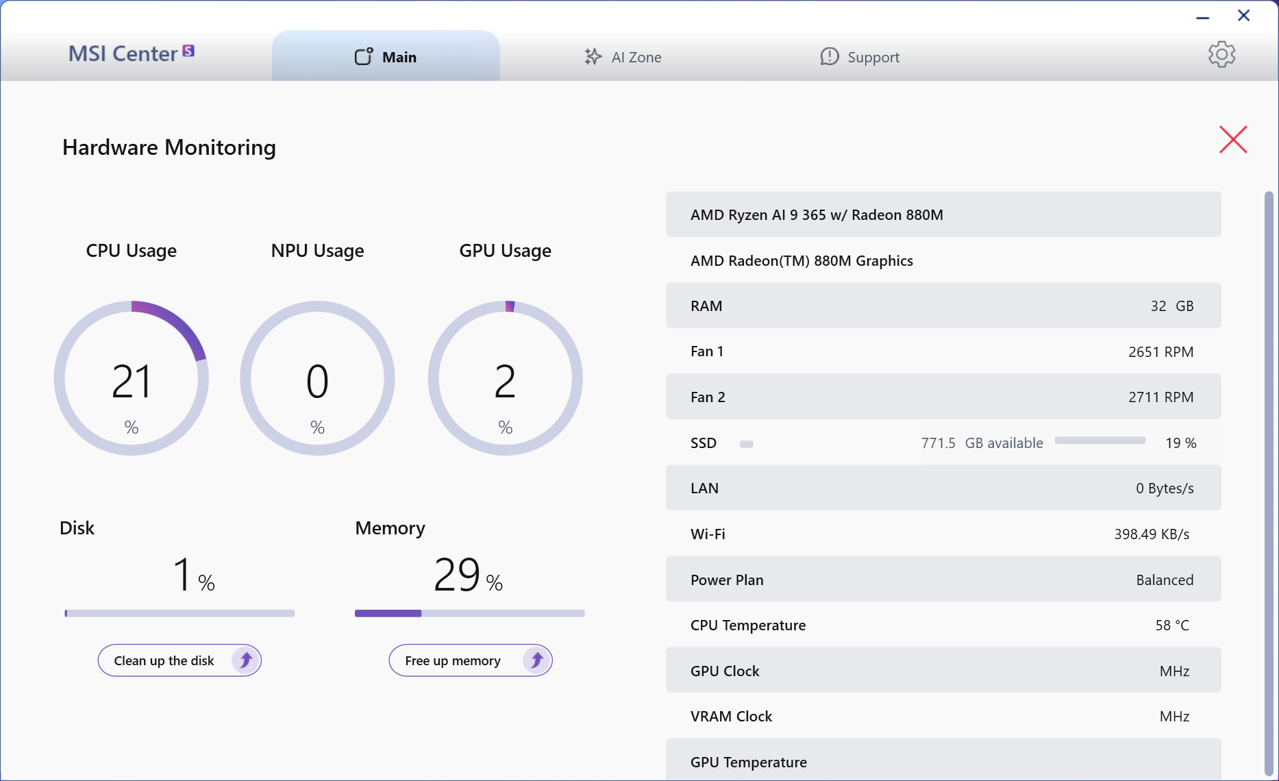 - GPU : AMD Radeon 880M (12C, 2900 MHz)
