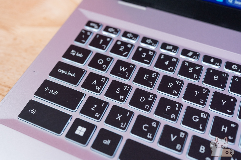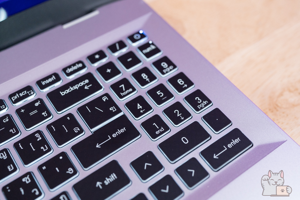 - คีย์บอร์ดกดใช้งานได้ดีกว่า Notebook บางเบาทั่วไป จากระยะกด 1.7 ม.ม.