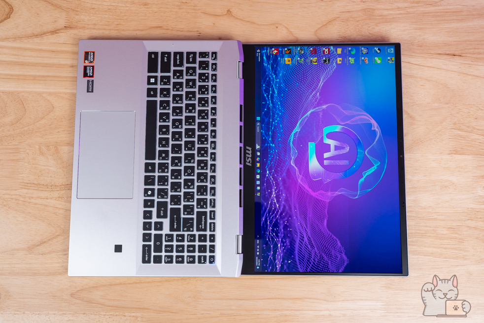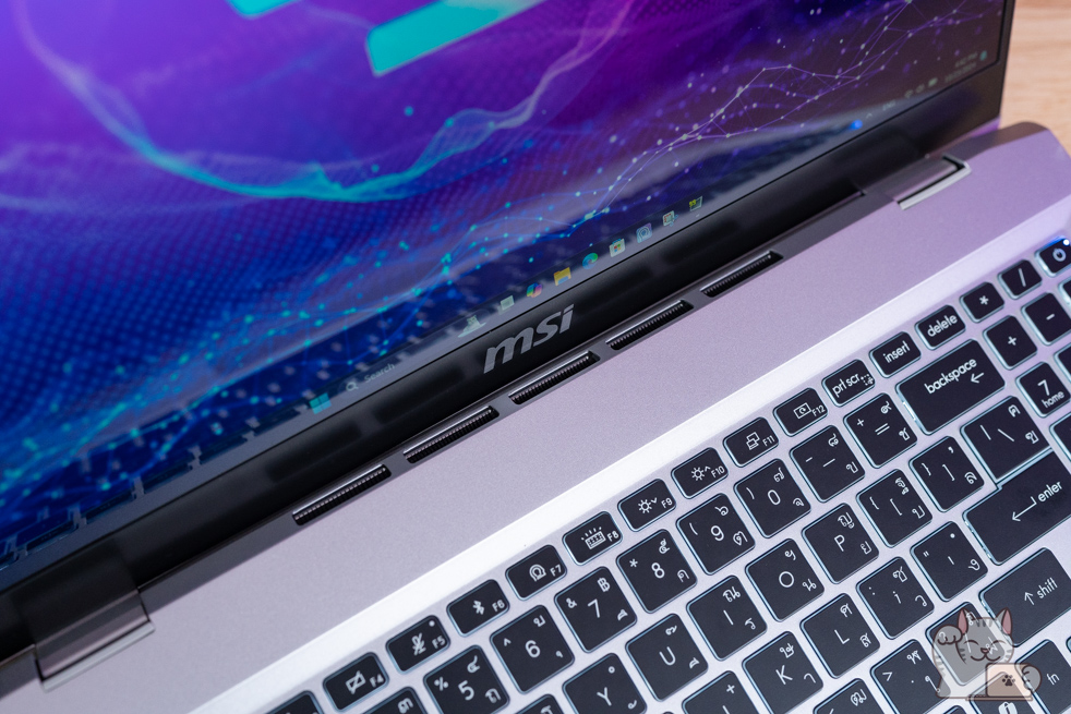คีย์บอร์ด MSI Prestige A16 AI+ ต้องบอกว่าแตกต่างจาก Notebook ทั่วไป กับการตอบสนองได้ดี โดยพัฒนาและออกแบบมาให้ MSI โดยเฉพาะ ทั้งอารมณ์การตอบสนองของแป้นพิมพ์ แรงกด โดยมีระยะกดที่ 1.7 มิลลิเมตร ที่ลึกเหมือน Gaming ไฟส่องสว่างสีขาว ให้ความพรีเมียมและใช้งานง่ายในที่แสงน้อย รวมไปถึงมีปุ่ม Hot-key ต่างๆ ที่ปุ่ม Fn แถวบน พร้อมปรับแต่งซอฟแวร์ต่างๆ ผ่าน MSI Center S ได้ด้วยเช่นกัน แน่นอนมีแป้น Numpad ด้วย ใช้งานสะดวก จากการที่ตัวเครื่องมีมิติที่เล็ก เป็น Notebook ที่ดีไซน์บานพับให้กางหน้าจอได้ 180 องศา มีปุ่ม Flip&Share ที่ปุ่ม F12