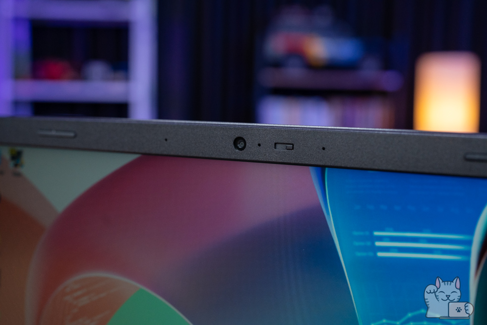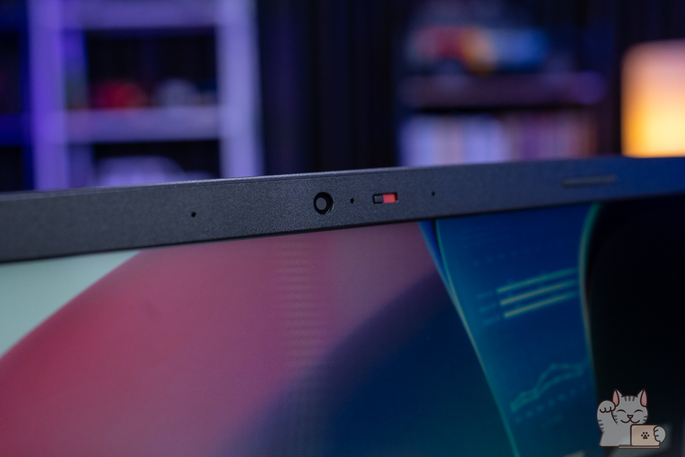 - ติดตั้งเว็บแคมที่ความละเอียด 720p พร้อมมีม่านชัตเตอร์ ที่สามารถเลื่อนเปิดปิดได้