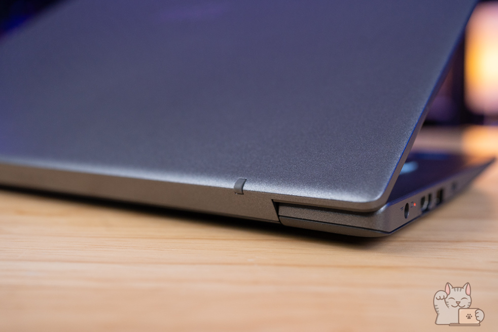 โดยฝาหลังและดีไซน์ทั้งหมดมีการเลือกใช้ให้มีความเข้ากันอย่างที่สุด กับพื้นผิวส่วนของฝาหลังและตัวเครื่องเป็นลักษณะแบบด้าน พร้อมกับใช้เทา Platinum Gray โดดเด่นด้วยผิวแบบผ่นทรายของตัวเครื่อง ที่ให้สัมผัสที่ดีและไม่เป็นรอยนิ้วมือเลย พร้อมกันนั้นก็ยังได้การออกแบบโลโก้รุ่นใหม่ นอกจากนี้ยังมีความเจ๋งที่ตัวเครื่องได้รับมาตรฐานทนทาน Military Grade MIL-STD 810G ทำให้รองรับต่อแรงกระแทก อุณหภูมิสูงต่ำ ความชื้น ความกดอากาศ และแสงแดด เรียกได้ว่าเป็นโน๊ตบุ๊คน้อยรุ่นนักที่มาพร้อมคุณสมบัติแบบนี้ ในช่วงราคานี้