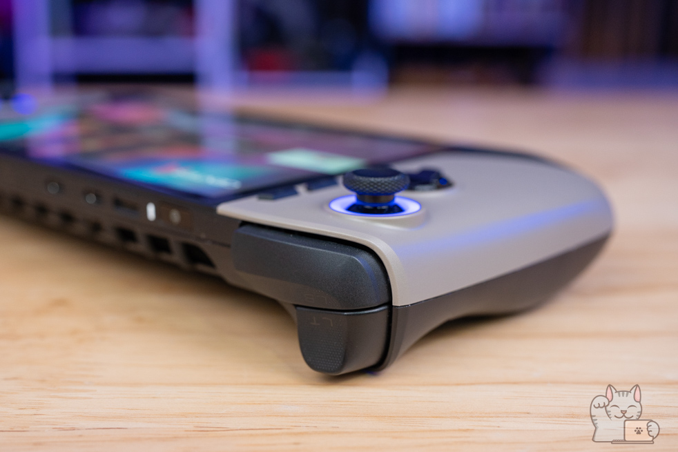 ดีไซน์ของตัวเครื่อง MSI Claw 8 AI+ ได้รับแรงบันดาลใจจากจอยคอนโทรลเลอร์สมัยใหม่ ทำให้เวลาถือใช้งานรู้สึกพอดีมือ ไม่ล้า กริปด้านหลัง ถูกปรับให้มีความโค้ง รับกับนิ้วมือมากขึ้น พร้อมพื้นผิวสัมผัสที่ช่วยให้จับได้แน่นแม้เหงื่อออก ปุ่ม ABXY, D-PAD, Joystick ถูกวางในระยะที่ลงตัว ให้ความรู้สึกใกล้เคียงกับจอยเกมคอนโซลจริง ปุ่ม Triggers และ Shoulder Buttons มีระยะกดลึกและนุ่ม ขึ้นจากรุ่นแรก กดมันส์มือขึ้นมาก ที่สำคัญคือตัว Hall Effect Analog Sticks & Triggers มีความทนทานพร้อมด้วยความแม่นยำที่มากว่า