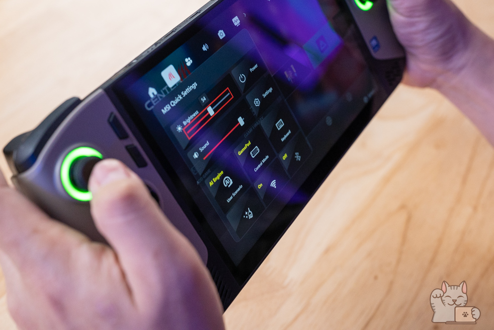 MSI Center M เป็นโปรแกรมสำเร็จรูปที่ออกแบบมาเป็นอย่างดี เพื่อ MSI Claw 8 AI+ โดยเฉพาะ ซึ่งเป็นโปรแกรมที่ต่อยอดมาจากรุ่นก่อนๆ คือ ใช้งานสะดวก สามารถช่วยเหลือ จัดการการปรับแต่งตั้งค่าเครื่องเล่นเกมพกพาได้อย่างลงตัว พร้อมได้ธีมที่เข้ากับตัวเครื่อง ถือว่าเป็นอีกหนึ่งไฮไลน์ของทาง MSI ซึ่งแบ่งเป็นหมวดหมู่ต่างๆ เพื่อให้ง่ายต่อการใช้งาน โดยหน้าเมนูต่างๆ แบ่งตามลักษณะการใช้งานที่ชัดเจน รวมไปถึงการอัปเดทซอฟต์แวร์ต่างๆ และสามารถดูสภานะการทำงานได้ ซึ่งสามารถจัดการได้ง่ายยิ่งกว่าเดิมอีกด้วย