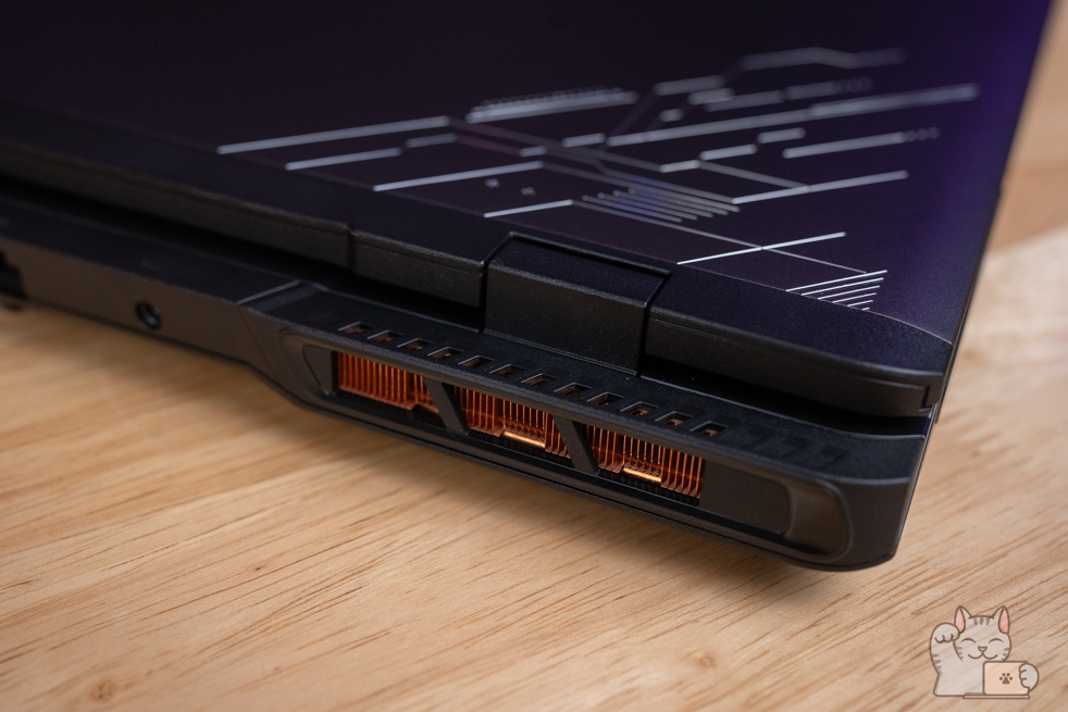 โดยรุ่นนี้ยังมาพร้อมกับ Gamers Hotkey อย่างปุ่มเร่งพัดลมให้ทำงานเต็มที่ Cooler Boots และปุ่มเรียกใช้ Crosshair ไว้สำหรับช่วยเล็กเป้าในเกมต่างๆ ที่เป็น FPS ซึ่งจะเป็นส่วนหนึ่งของปุ่มทิศทาง พร้อมมีปุ่ม Fn + F7 ใช้ปรับโหมดการใช้งานต่างๆ และอีกมากมายในส่วนของแถวบนสุดคีย์บอร์ด ในส่วนของทัชแพดเป็นแบบซ่อนปุ่มคลิกซ้ายคลิกขวาทำให้ดูเป็นเนื้อเดียวกัน มีลวดลายเข้ากับตัวเครื่องโดยรวม โดยปุ่มกดไม่แข็งไม่นิ่มเกินไป ผิวสัมผัสของทัชแพดเป็นแบบด้านๆ การใช้งานอยู่ในเกณฑ์ที่ดี
