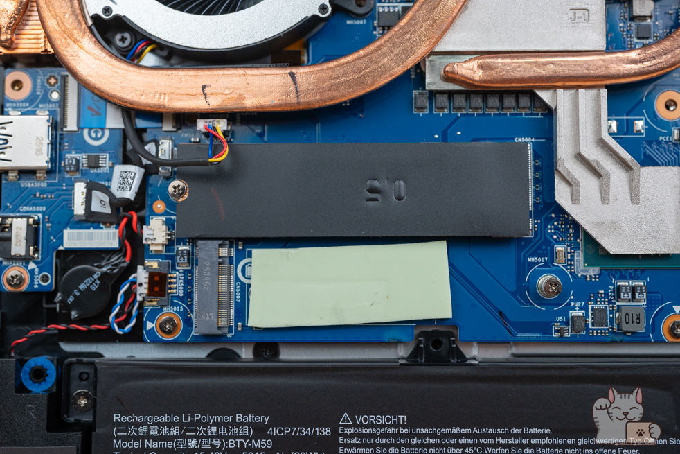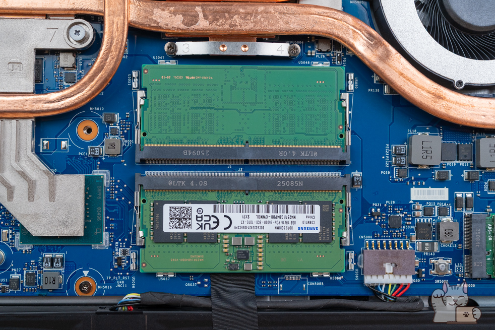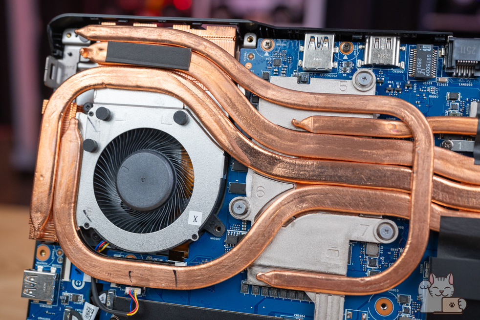 เมื่อแกะออกมาแล้วจะเห็นว่าติดตั้งแรมมาแล้วขนาด 16GB DDR5 Bus 5600 MHz เป็น 8GB จำนวน 2 แถว ที่รองรับการใช้งานได้ขนาดสูงสุด 96GB (48GB x 2) ส่วน SSD M.2 NVMe PCIe Gen 4 ความจุ 1TB จำนวน 1 ตัว พร้อมมี SSD Slot เพิ่มการอัปเกรดได้ทันที 1 ตัว ด้านระบบระบายความร้อนก็จะเป็นระบบ Cooler Boost 5 ซึ่งเน้นในเรื่องของทิศทางการไหลเวียนเข้าออกของลมที่ดีขึ้นกว่าปกติทั่วไป โดยจะมีช่องระบายความร้อนทั้งหมดถึง 4 ช่อง เป็นด้านหลัง 2 ด้านข้างซ้ายขวาอีก 2 ช่อง พร้อม Heat Pipe แบบใหม่ที่มีการเชื่อมต่อกัน