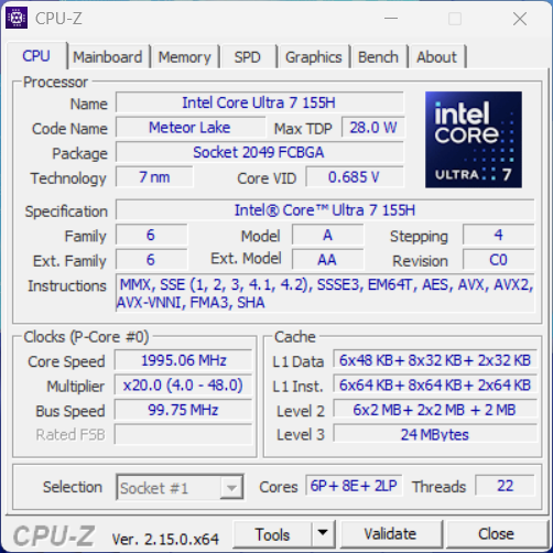 - CPU : Intel Core Ultra 7 155H (16C/22T, up to 4.8GHz)