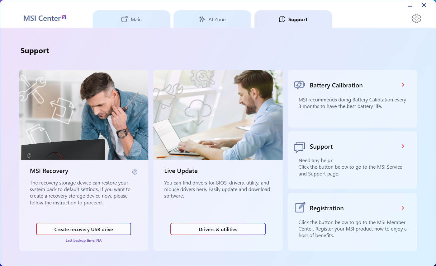 MSI Center S เป็นโปรแกรมสำเร็จรูปที่ออกแบบมาเป็นอย่างดี ซึ่งเป็นโปรแกรมที่ต่อยอดมาจากรุ่นก่อนๆ คือ ใช้งานสะดวก สามารถช่วยเหลือ จัดการการปรับแต่งตั้งค่า MSI Notebook ได้อย่างลงตัว พร้อมได้ธีมที่เข้ากับตัวเครื่อง ถือว่าเป็นอีกหนึ่งไฮไลน์ของทาง MSI ซึ่งแบ่งเป็นหมวดหมู่ต่างๆ เพื่อให้ง่ายต่อการใช้งาน โดยหน้าเมนูต่างๆ แบ่งตามลักษณะการใช้งานที่ชัดเจน รวมไปถึงการอัปเดทซอฟต์แวร์ต่างๆ และสามารถดูสภานะการทำงานได้ ซึ่งสามารถจัดการได้ง่ายยิ่งกว่าเดิมอีกด้วย