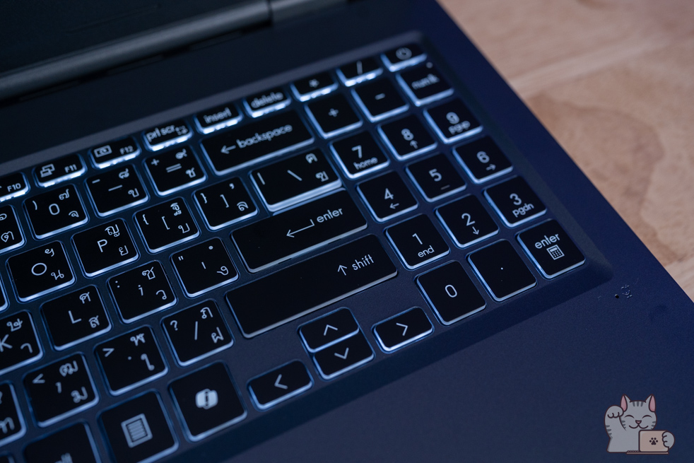 - ตัวเครื่องเบา 1.9 โล ได้คีย์บอร์ดตอบสนองได้ดี มีไฟส่องสว่าง