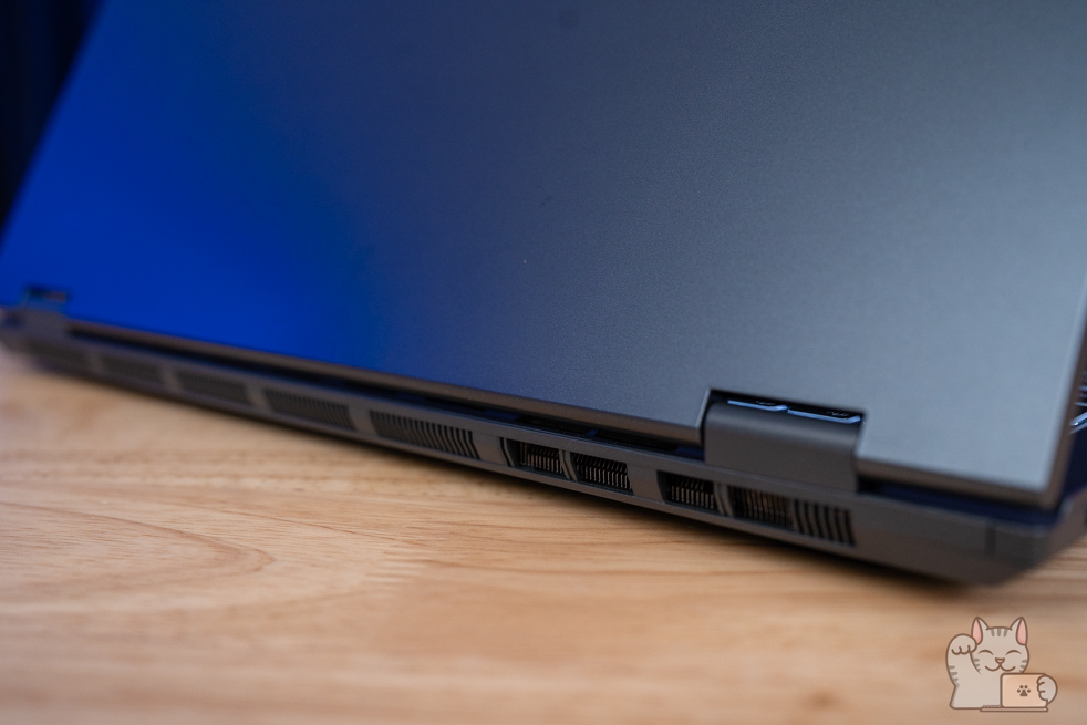 - บานพับกางหน้าจอได้ 180 องศา มีปุ่ม Flip&Share ที่ปุ่ม F12