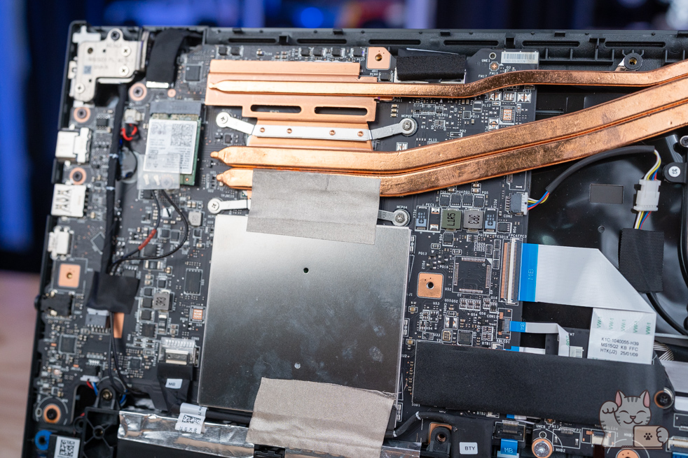 ในส่วนของระบบระบายความร้อนก็จะเป็นระบบ Cooler Boost ซึ่งเน้นในเรื่องของทิศทางการไหลเวียนเข้าออกของลมที่ดีขึ้นกว่าปกติทั่วไป โดยจะมีช่องระบายความร้อนทั้งหมดถึง 2 ช่อง เป็นด้านหลัง 1 ด้านข้างอีก 1 ช่อง พร้อม Heat Pipe แบบใหม่ที่บางพิเศษ จำนวน 3 เส้นขนาดใหญ่ที่มีการเชื่อมต่อกัน ส่งผลในการใช้งานแบบ Full Load ทำได้อย่างเสถียรภาพสูง ซึ่งการแกะฝาล่างของ MSI Notebook สามารถทำได้ง่าย โดยที่ไม่ต้องกังวลว่าประกันจะหลุดแต่อย่างใด ขอแค่ว่าอย่าแกะจนเกิดความเสียหายก็พอ รวมไปถึงการใส่กลับด้วย ฉะนั้นต้องทำด้วยความระวัง