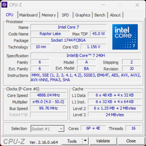 • CPU : Intel Core 7 240H (10C/16T, up to 5.2GHz)