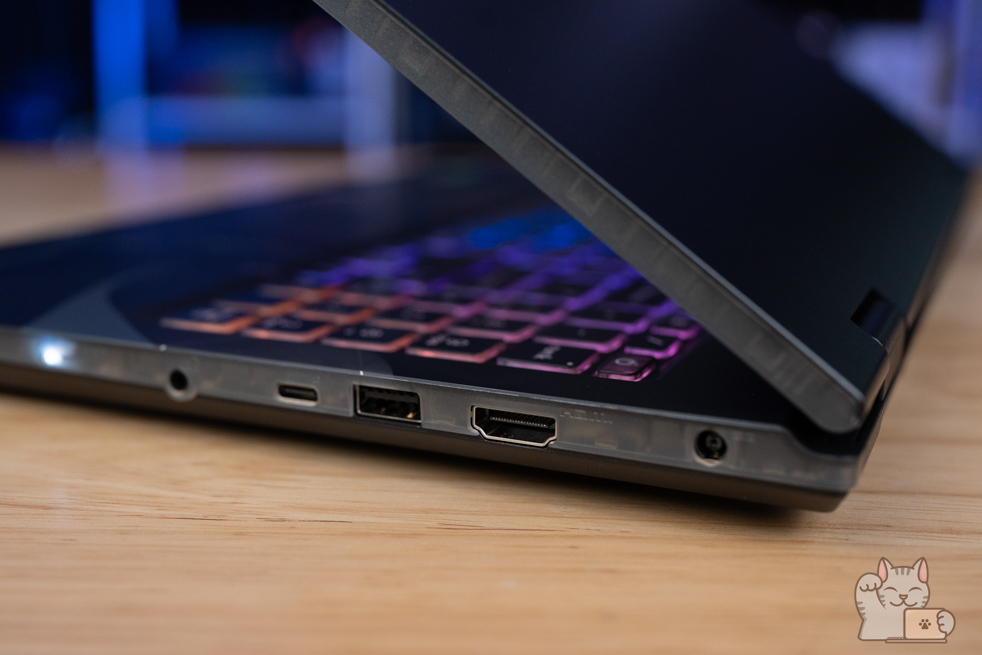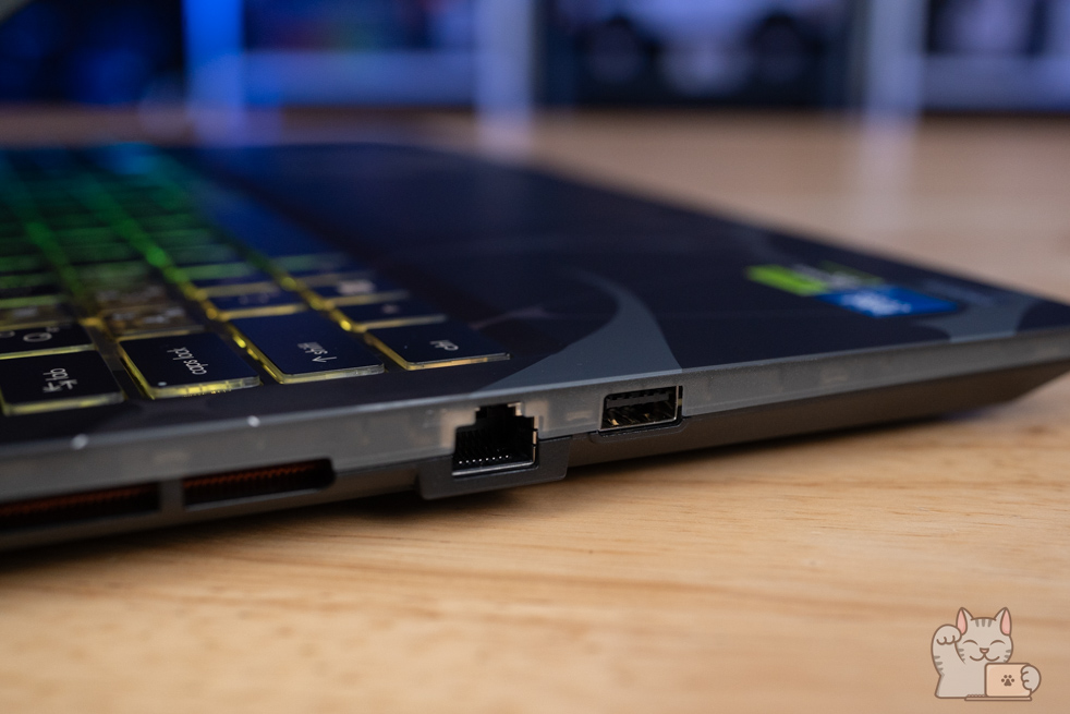 เป็น Gaming Notebook หน้าจอ 15.6″ ที่มีพอร์ตเชื่อมต่อที่ครบครัน ไม่ว่าจะเป็น 2 x USB 3.2 Type-A, USB 3.2 Type-C แบบรองรับการต่อจอแยกได้ด้วยมาตรฐาน DisplayPort พร้อมชาร์จไฟกลับเข้าเครื่องได้ ทำให้สะดวกในการใช้งาน นอกจากนี้ยังมี HDMI, ช่องหูฟังกับไมค์แบบ Combo ที่สำคัญคือได้ LAN RJ-45 เพื่อการเชื่อมต่อ Network อย่างไรก็ตามพอร์ตการเชื่อมต่ออาจจะดูไม่เยอะแต่ก็เพียงพอกับการใช้งานพื้นฐาน ส่วนเชื่อมต่อไร้สายด้วย Wi-Fi 6E + Bluetooth 5.3