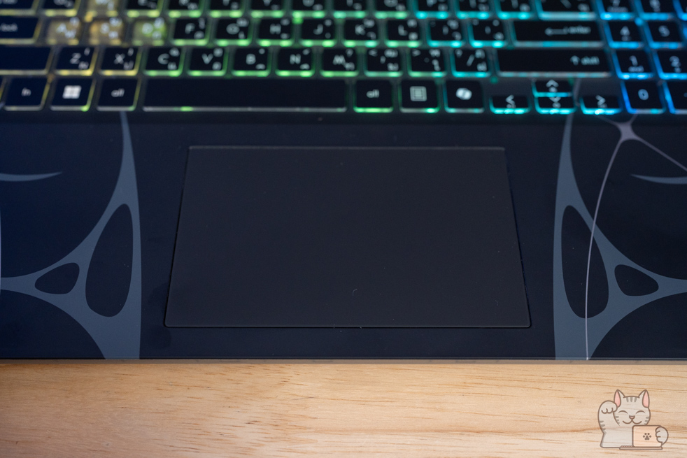 ทัชแพดมีขนาดใหญ่ ถ้าเทียบกับตัวเครื่อง  โดยดูเป็นเนื้อเดียวกับตัวเครื่อง แต่มีเฉดสีที่ต่างกันเล็กน้อย ตัวปุ่มคลิกเป็นแบบชิ้นเดียวกับทัชแพด เข้ากับตัวเครื่องโดยรวม โดยการควบคุมสามารถทำได้เป็นอย่างดี ส่วนปุ่มคลิกทั้งซ้ายขวาก็อาจจะมีความแข็งพอดีๆ การใช้งานโดยจัดได้ว่าอยู่ในระดับลงตัว ใช้งานได้สะดวกสำหรับการวางบนตัก หรือเล่นในร้านกาแฟ โดยการควบคุมมีการตอบสนองได้ดี  พร้อมรองรับ Multi Gesture ลื่นไหล ทำงานร่วมกับ Windows 11 Home ได้เป็นอย่างดี