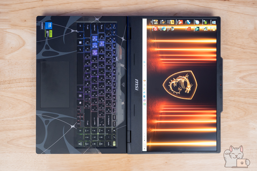 มาพร้อมประสิทธิภาพสูง คุณภาพเยี่ยม เล่นเกมได้ลื่นไหล หรือเอาไปทำงานก็ดี ตอกย้ำความเป็น MSI Gaming ที่ ได้รับการตอบรับดีที่มาก ๆ ตอบสนองทุกการใช้งานได้อย่างราบรื่น รวดเร็ว โดยมีการติดตั้งไฟคีย์บอร์ดแบบ RGB 4 Zone โดดเด่น กับความโปร่งแสงในหลายๆ จุด ตามสไตล์ของ MSI โดยได้หน้าจอพาเนล IPS ความละเอียด Full HD (1920 x 1080px) ที่รองรับ Refresh Rate 144Hz ให้ความลื่นไหลสบายตา ค่าขอบเขตสี sRGB ราว 6x% เน้นเล่นเกม หรือทำงานทั่วไปไม่ใช่ Creator ที่เน้นงานมืออาชีพจริงจัง