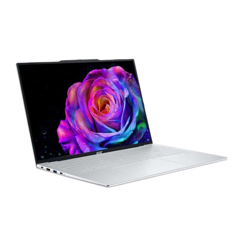Acer Swift Air 16 เป็น Copilot+ PC รุ่นใหม่ปี 2025 ได้หน้าจอ OLED ที่เครื่องบางสุด 16.5 ม.ม. และเบาเพียง 1.1 กิโลกรัม นับว่าเป็น Notebook จอ 16″ ที่เบาที่สุดรุ่นหนึ่งของโลก ใช้สเปกชิปประมวลผล AMD Ryzen AI 300 สถาปัตยกรรม Zen 5, 4nm อย่าง Ryzen AI 7 350 (8C/16T, Up to 5GHz) โดยมีเทคโนโลยี Ryzen AI อย่าง NPU 50TOPS ที่เป็นช่วยประมวลผลด้าน AI ด้านต่างๆ ช่วยลดภาระงานระบบประมวลผลเพื่อให้สามารถดำเนินการเวิร์กโหลดอื่นๆ ได้และทำให้ระบบการทำงานหลักรวดเร็วขึ้น ใช้การ์ดจอออนบอร์ดอย่าง Radeon 860M ได้ความแรงที่เหนือชั้นกับประสิทธิภาพ 3 มิติ ใกล้เคียงกับการ์ดจอแยก