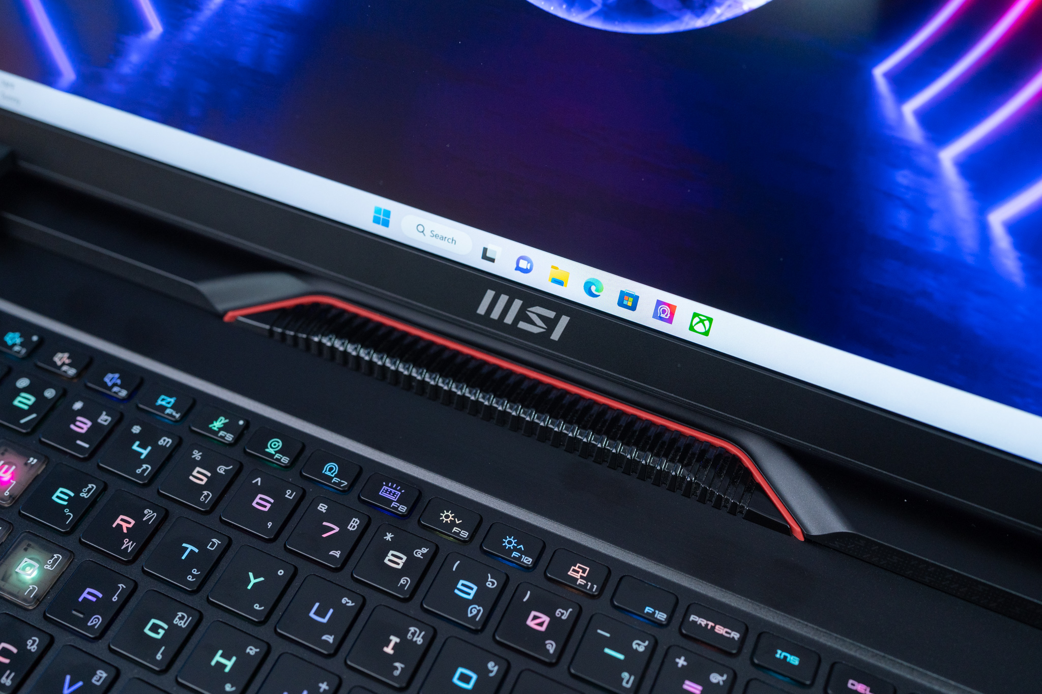 อีกทั้งได้ฟีเจอร์ล้ำๆ ด้วย RGB Light Bar ที่จัดเต็มยิ่งกว่าอย่าง Mystic Light Matrix Lightbar ซึ่งติดตั้งที่ขอบตัวเครื่องด้านหน้าเป็นแนวยาววัสดุเป็นอะคริลิคที่รมดำเข้ากับตัวเครื่อง ให้การแสดงผลแบบ 3 มิติ เพื่อให้สัมผัสถึงแสงไฟ RGB ที่สวยงาม แน่นอว่าทำงานร่วมกับไฟคีย์บอร์ด RGB Pre-Key เป็นอย่างดี สำหรับ MSI Raider GE78HX เป็น Gaming Notebook ระดับสูงมาตรฐานปี 2023 ด้วยหน้าจอขนาด 17″ ดีไซน์ขอบบางพิเศษ ทำให้มีความกระชับกว่ารุ่นจอ 17.3″