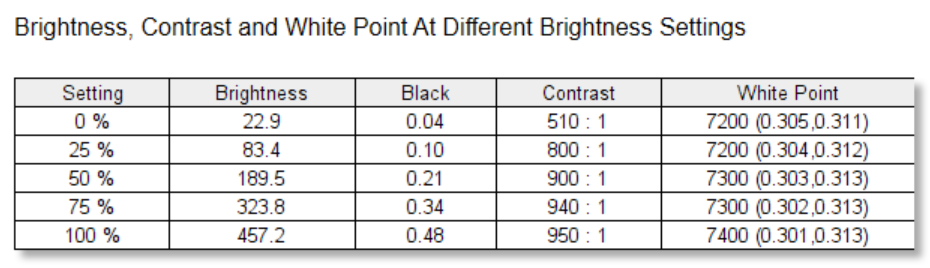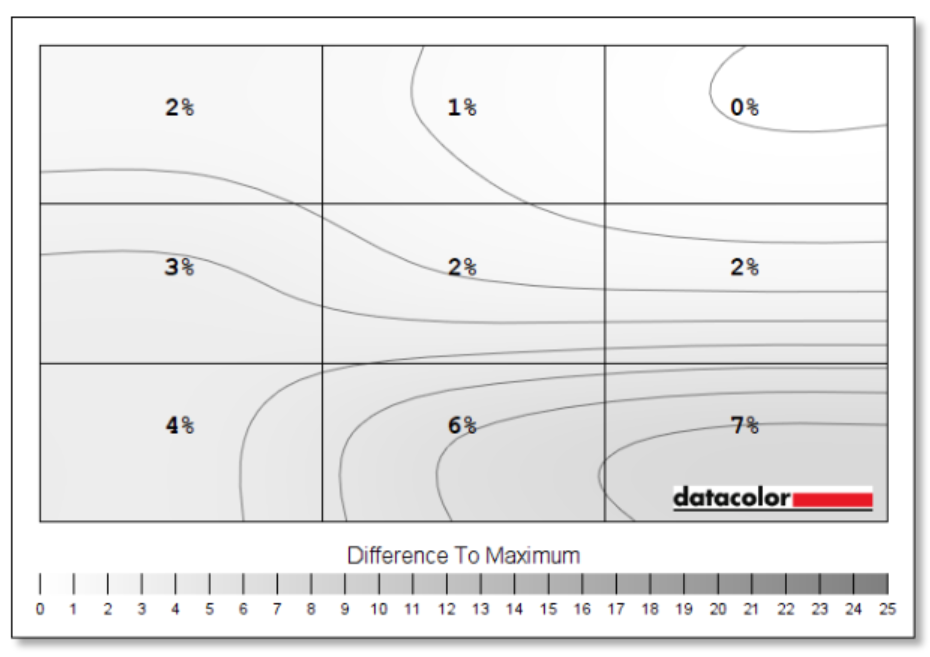 ส่วนอื่นๆ ของการทดสอบหน้าจอในด้านต่างๆ ได้ความสว่างหน้าจอสูงสุดอยู่ที่เกือบๆ 460 nit ซึ่งจัดได้ว่าอยู่ในเกณฑ์ดีกว่ามาตรฐานความสว่างของหน้าจอในโน้ตบุ๊คทั่วไปกว่า 1 – 2 เท่า ส่วนค่าความสม่ำเสมอในการความสว่างทั้งหน้าจอโดยแบ่างออกเป็น 9 ช่อง ก็จะเห็นว่ามีความสว่างที่แตกต่างกันเล็กน้อย สูงสุดที่ 7% เท่านั้น อีกทั้งค่าคลาดสี Delta-E ก็เฉลี่ยแล้วต่ำกว่า 2 ซึ่งดีมากๆ ปิดท้ายกับคะแนนรวมของทุกๆ การทดสอบก็จะอยู่ที่ 4.5 เรียกว่าเป็น Gaming Notebook ที่คุณภาพสูงมาก