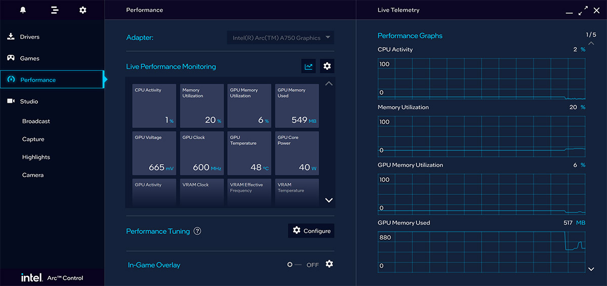 ไดรเวอร์หรือซอฟต์แวร์ของ Intel ARC ARC A750 Limited Edition อย่าง Intel ARC Graphics Drivers มี UI ที่สวยงาม พร้อมฟีเจอร์ที่หลากหลาย ทั้งในการปรับแต่ง หรือใช้งานเพื่อสายสตรีม Content อย่างไรก็ตามตัวไดรเวอร์เองต้องเสถียรนั้นเป็นเรื่องสำคัญ จะได้สามารถขับประสิทธิภาพของตัวการ์ดจอได้เต็มที่ เล่นเกมได้ลื่นๆ หรือใช้งานได้อย่างสเถียร ปัจจุบันทาง Intel เองได้ออกไดรเวอร์ตัวล่าสุดแล้วอย่าง 31.0.101.4146 ประจำวันที่ 22 ก.พ. 66 ซึ่งก็ให้ประสบการณ์ใช้งานที่ดี