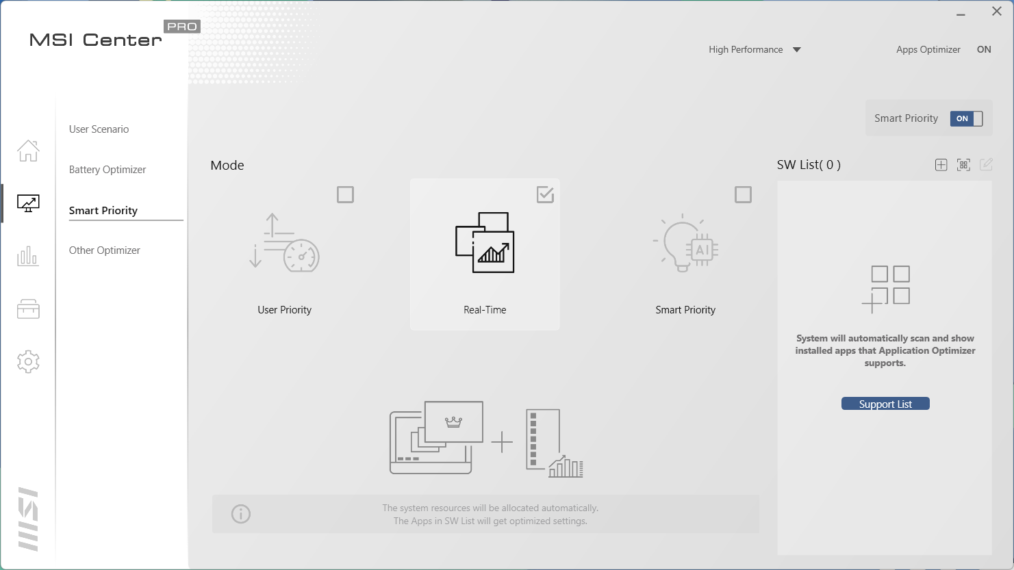 MSI Center เป็นโปรแกรมสำเร็จรูปที่ออกแบบและพัฒนาโดย MSI ซึ่งเป็นโปรแกรมที่ต่อยอดมาจากรุ่นก่อนหน้า คือ ใช้งานสะดวกและสามารถช่วยเหลือ และ จัดการการปรับแต่งตั้งค่า MSI Notebook ได้อย่างลงตัว ถือว่าเป็นอีกหนึ่งไฮไลน์ของทาง MSI ก็ว่าได้ ซึ่งแบ่งเป็นหมวดหมู่ต่างๆ เพื่อให้ง่ายต่อการใช้งาน โดยหน้าเมนูต่างๆ แบ่งตามลักษณะการใช้งานที่ชัดเจน รวมไปถึงการอัพเดทซอฟต์แวร์ต่างๆ และสามารถดูสภานะการทำงานได้ ซึ่งสามารถจัดการได้ง่ายยิ่งกว่าเดิมอีกด้วย