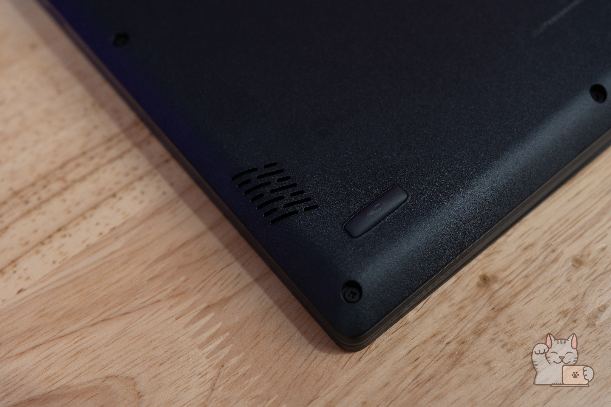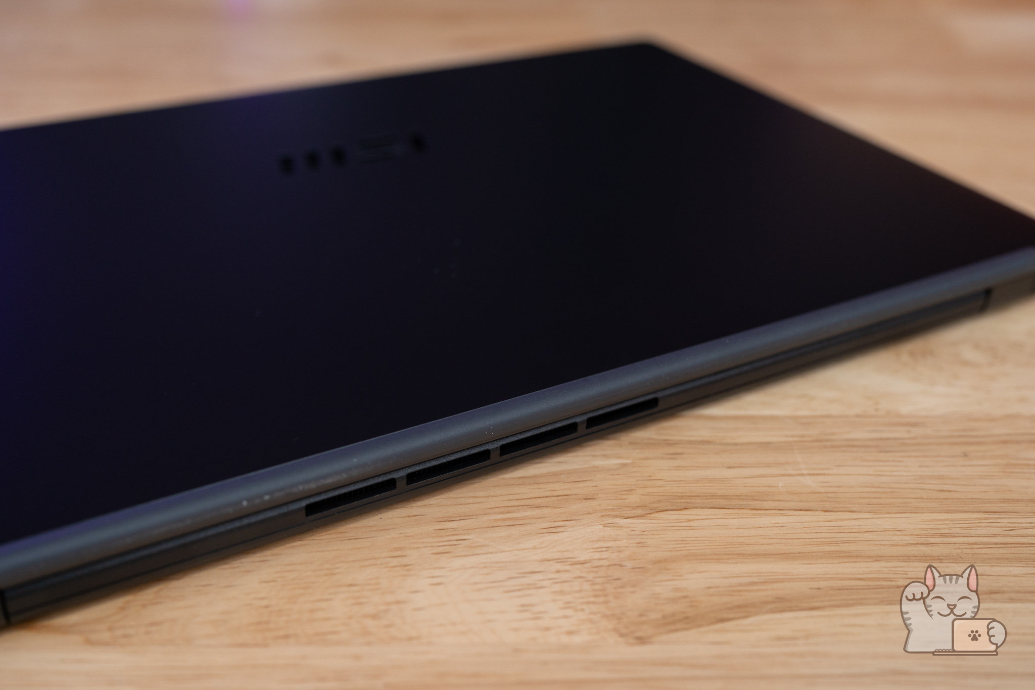 โดยฝาหลังและดีไซน์ทั้งหมดมีการเลือกใช้ให้มีความเข้ากันอย่างที่สุด กับพื้นผิวส่วนของฝาหลังและตัวเครื่องเป็นลักษณะแบบด้าน พร้อมกับใช้สีดำ Classic Black พื้นผิวแบบเรียบเนียนดู พร้อมกันนั้นก็ยังได้การออกแบบโลโก้รุ่นใหม่ นอกจากนี้ยังมีความเจ๋งที่ตัวเครื่องได้รับมาตรฐานทนทาน Military Grade MIL-STD 810G ทำให้รองรับต่อแรงกระแทก อุณหภูมิสูงต่ำ ความชื้น ความกดอากาศ และแสงแดด เรียกได้ว่าเป็นโน๊ตบุ๊คน้อยรุ่นนักที่มาพร้อมคุณสมบัติแบบนี้ ในช่วงราคานี้