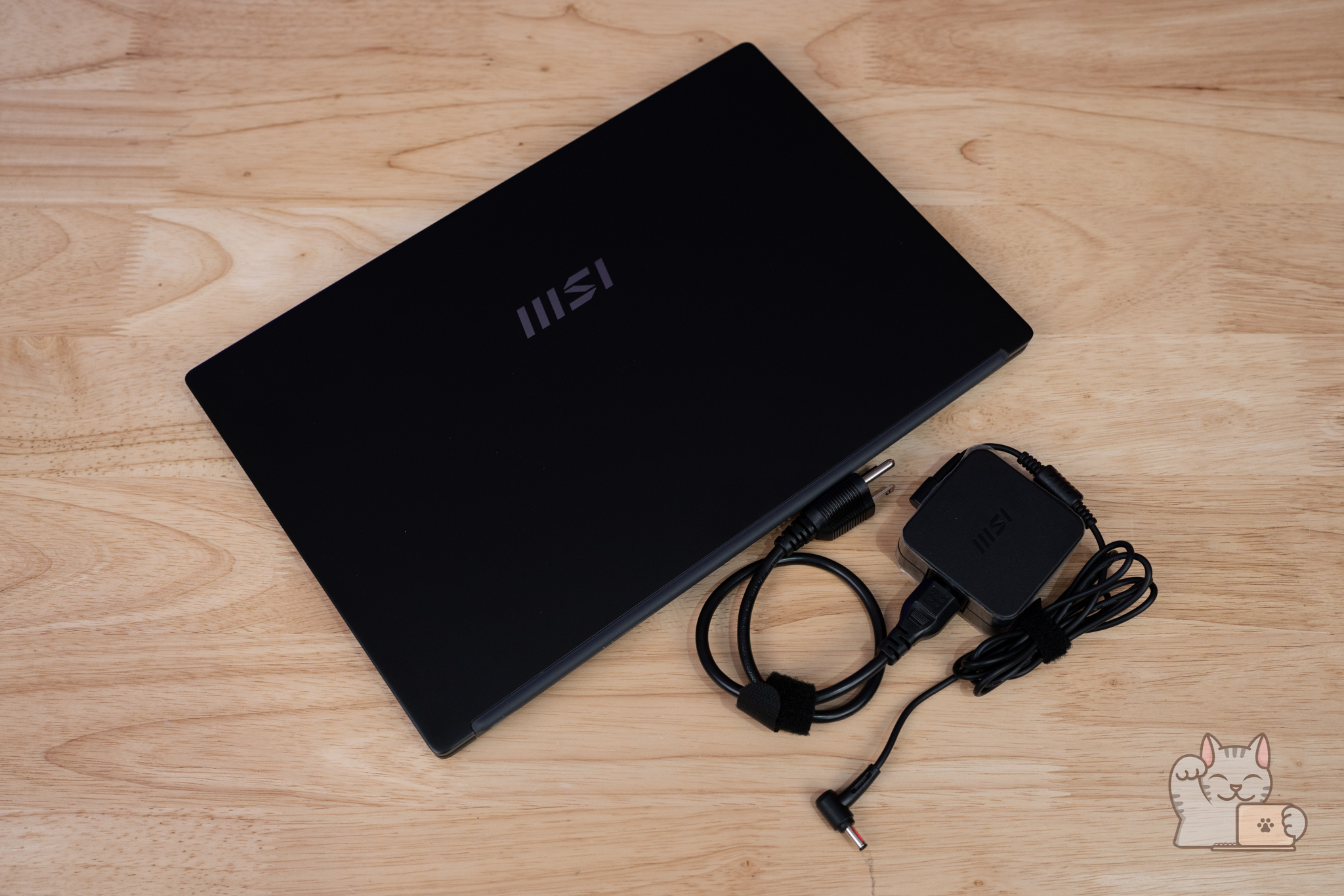 ส่วนของการพกพาของ MSI Modern 15 ก็ถือว่าทำได้เยี่ยมยอดเมื่อเทียบกับสเปก ด้วยน้ำหนักตัวเครื่องเพียง 1.6 กิโลกรัมเท่านั้น ดีกว่าตามมาตรฐานของโน๊ตบุ๊คค่ายอื่นๆ ที่ใช้ตัวเครื่องหน้าจอ 15.6″ ที่สำคัญอแดปเตอร์จ่ายไฟที่ 65 Watt นั้น มีขนาดที่เล็กและเบากว่าปกติ (แต่ถ้าให้ดีเป็นหัว Flip ออกมาเลยน่าจะดีกว่า) ทำให้การพกพาไปใช้งานนอกสถานที่ เป็นเรื่องที่ง่ายและสะดวกมากๆ น้ำหนักโดยรวมแล้วอยู่ที่ 1.9 กิโลกรัมแน่นอน นับว่าเป็นอีกหนึ่งโน๊ตบุ๊คสายทำงานที่เหมาะกับการใช้งานตามร้านกาแฟ ออฟฟิศ มหาวิทยาลัยมากๆ เครื่องหนึ่ง
