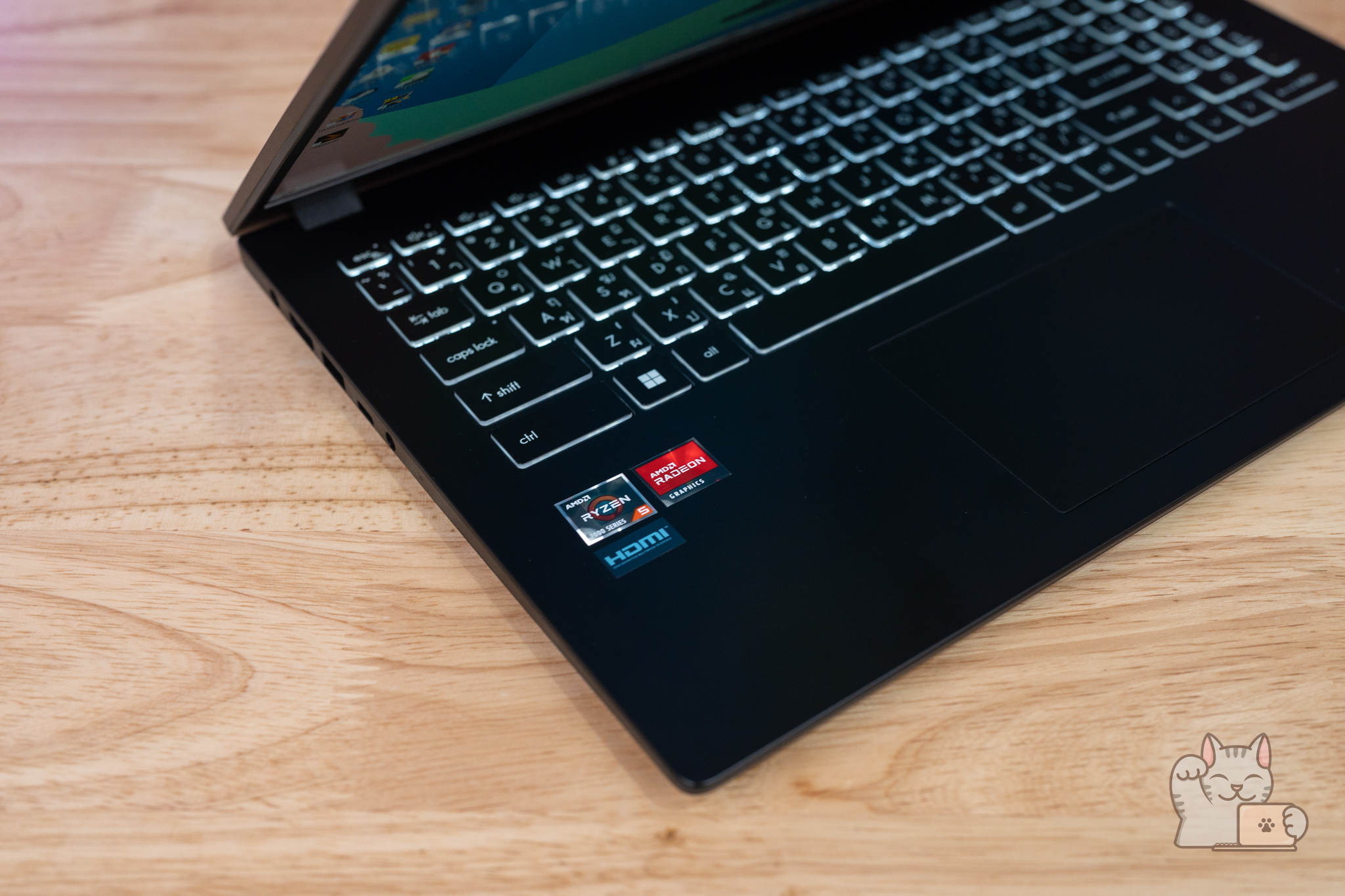 ในน้ำหนักตัวเครื่องที่เบามากๆ เพียง 1.75 กิโลกรัมเท่านั้น เน้นพกพาใช้งานสะดวก ได้แรมออนบอร์ดขนาด 8GB DDR4 Bus 3200MHz พร้อม SSD M.2 NVMe Gen 3 ความจุ 512GB ที่ใช้งานพื้นฐานได้ลื่นสบายๆ รวมไปถึงเล่นเกมออนไลน์ก็ยังเอาอยู่ โดดเด่นแบตเตอรี่ใช้งานได้ยาวนานทั้งวัน อีกทั้งยังได้มาตรฐานทนทานอย่าง MIL-STD-810G Military Standard ทำให้ทนต่อ แรงกระแทก ความร้อน ความชื้นในระดับหนึ่ง