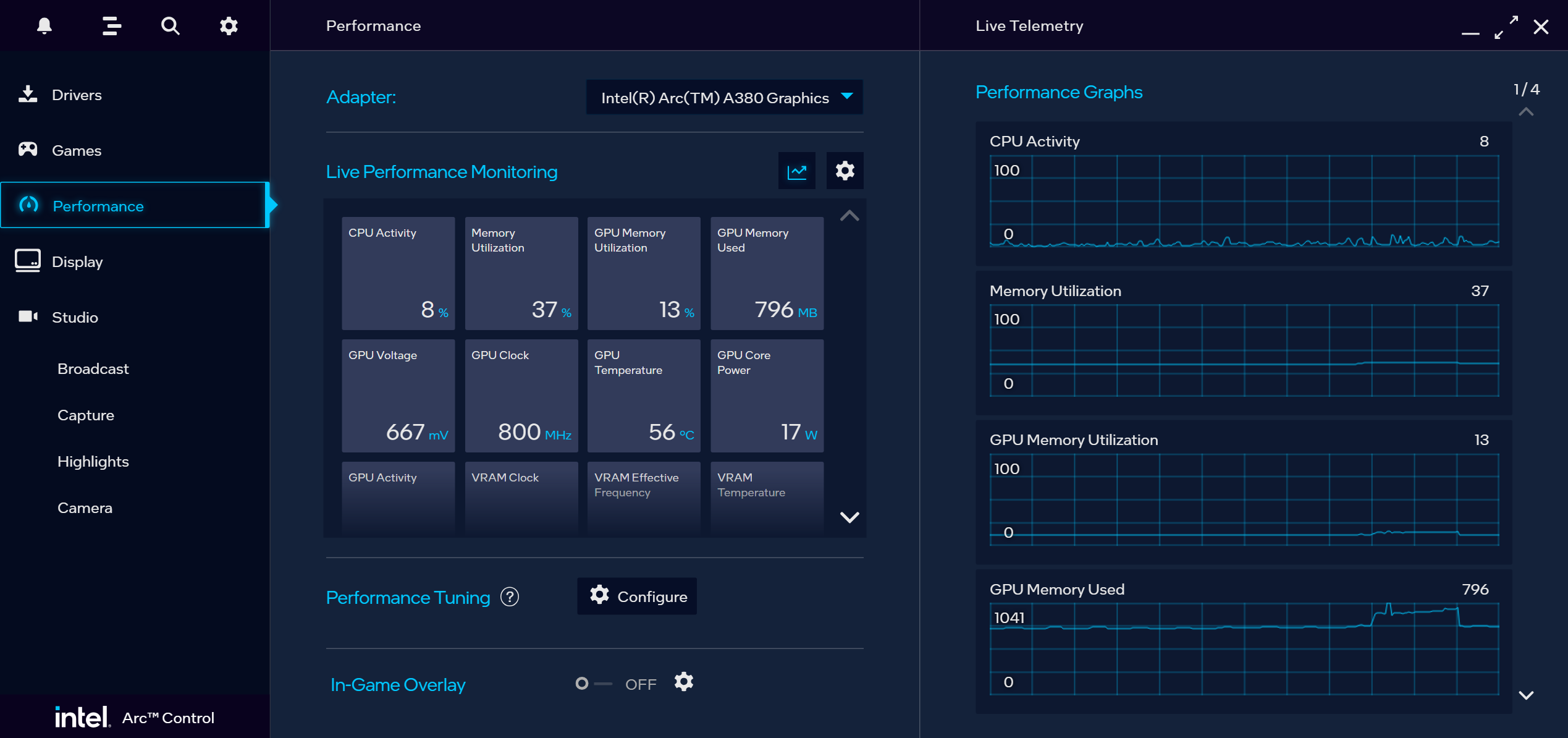 ไดรเวอร์หรือซอฟต์แวร์ของ SPARKLE Intel Arc A380 Elf อย่าง Intel ARC Graphics Drivers มี UI ที่สวยงาม พร้อมฟีเจอร์ที่หลากหลาย ทั้งในการปรับแต่ง หรือใช้งานเพื่อสายสตรีม Content อย่างไรก็ตามตัวไดรเวอร์เองต้องเสถียรนั้นเป็นเรื่องสำคัญ จะได้สามารถขับประสิทธิภาพของตัวการ์ดจอได้เต็มที่ เล่นเกมได้ลื่นๆ หรือใช้งานได้อย่างสเถียร ปัจจุบันทาง Intel เองได้ออกไดรเวอร์ตัวล่าสุดแล้วอย่าง 31.0.101.4644 ประจำวันที่ 11/08/66 ซึ่งก็ให้ประสบการณ์ใช้งานที่ดี