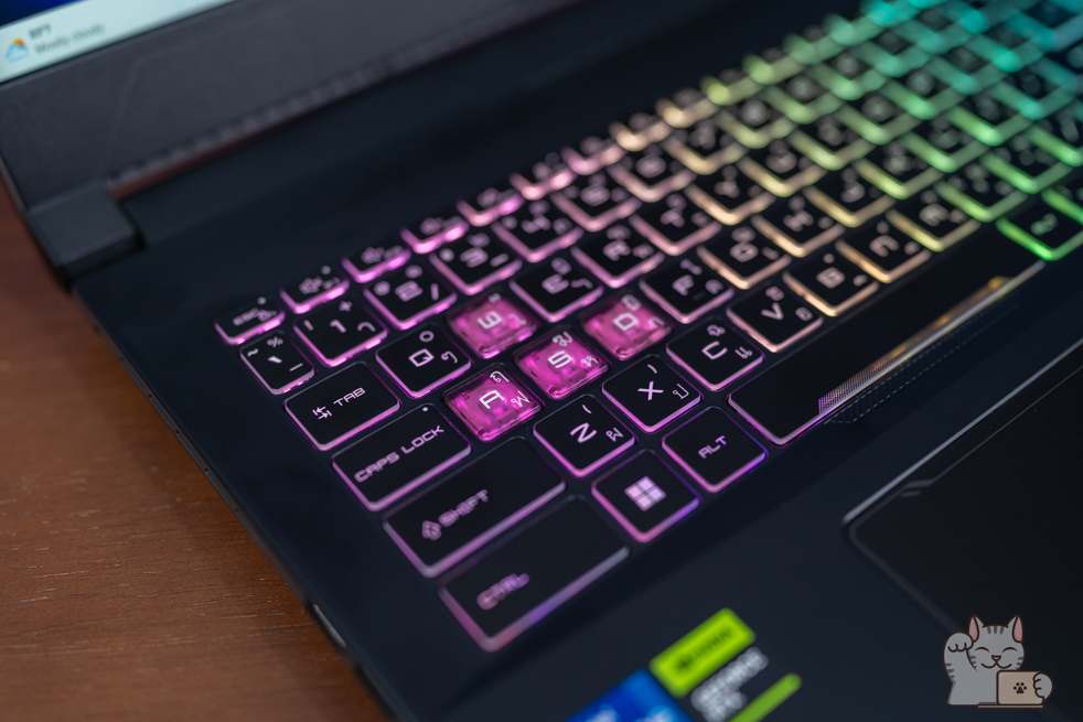 • คีย์บอร์ดสวยใช้งานได้ดี พร้อมมีไฟ RGB แบบ 4 Zone หลายๆ ปุ่มแบบโปร่งแสง