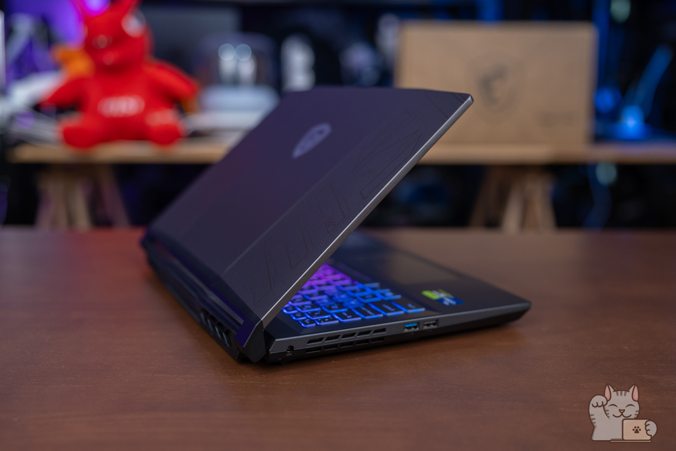 ซึ่งมีดีไซน์และแนวทางการออกแบบแตกต่างจาก MSI Pulse GL รุ่นก่อนหน้า ที่เป็นสเปกชิปประมวลผลและการ์ดจอตัวแรง ซึ่งเป็น Gaming Notebook ที่เน้นความเรียบง่ายแต่ดูดี รูปทรงกระทัดรัด แต่ใน MSI Katana 15 จะเน้นคอนเซปที่ได้ความพรีเมียมมากกว่า ได้เส้นสายเหลื่ยมสันที่ลงตัวตลอดทั้งตัวเครื่อง ซึ่งด้วยน้ำหนัก 2.25 กิโลกรัม และมีความบางที่ 24.9 มิลลิเมตร ที่ต้องบอกว่ามีน้ำหนักที่มาตรฐาน แต่จากการใช้งานจริงก็ต้องบอกว่าอยู่ในเกณฑ์ของ Gaming Notebook หน้าจอ 15.6″ ปกติ