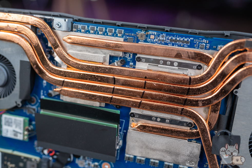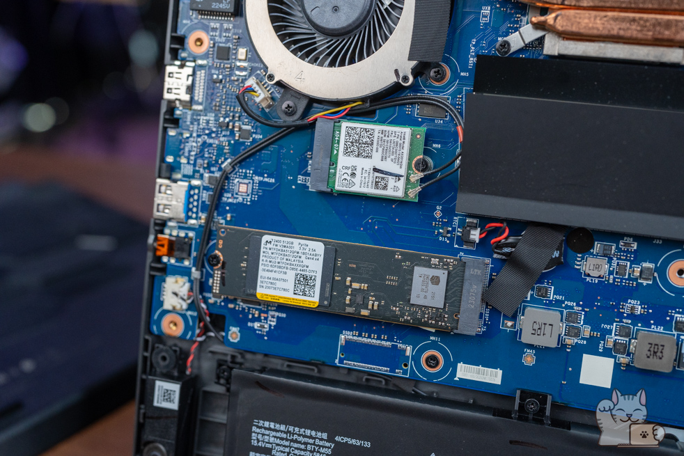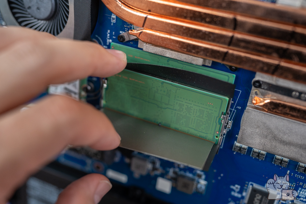 เมื่อแกะออกมาแล้วจะเห็นว่าติดตั้งแรมมาแล้วขนาด 16GB DDR5 Bus 5200 MHz เป็น 8GB จำนวน 2 แถว ที่รองรับการใช้งานได้แบบสบายชัวร์ๆ ส่วน SSD M.2 NVMe PCIe Gen 4 ความจุ 1TB จำนวน 1 ตัว แต่ก็น่าเสียดายที่ไม่มี SSD Slot เพิ่มการอัปเกรด ด้านระบบระบายความร้อนก็จะเป็นระบบ Cooler Boost 5 ซึ่งเน้นในเรื่องของทิศทางการไหลเวียนเข้าออกของลมที่ดีขึ้นกว่าปกติทั่วไป โดยจะมีช่องระบายความร้อนทั้งหมดถึง 3 ช่อง เป็นด้านหลัง 2 ด้านข้างซ้ายอีก 1 ช่อง พร้อม Heat Pipe แบบใหม่ที่มีการเชื่อมต่อกัน