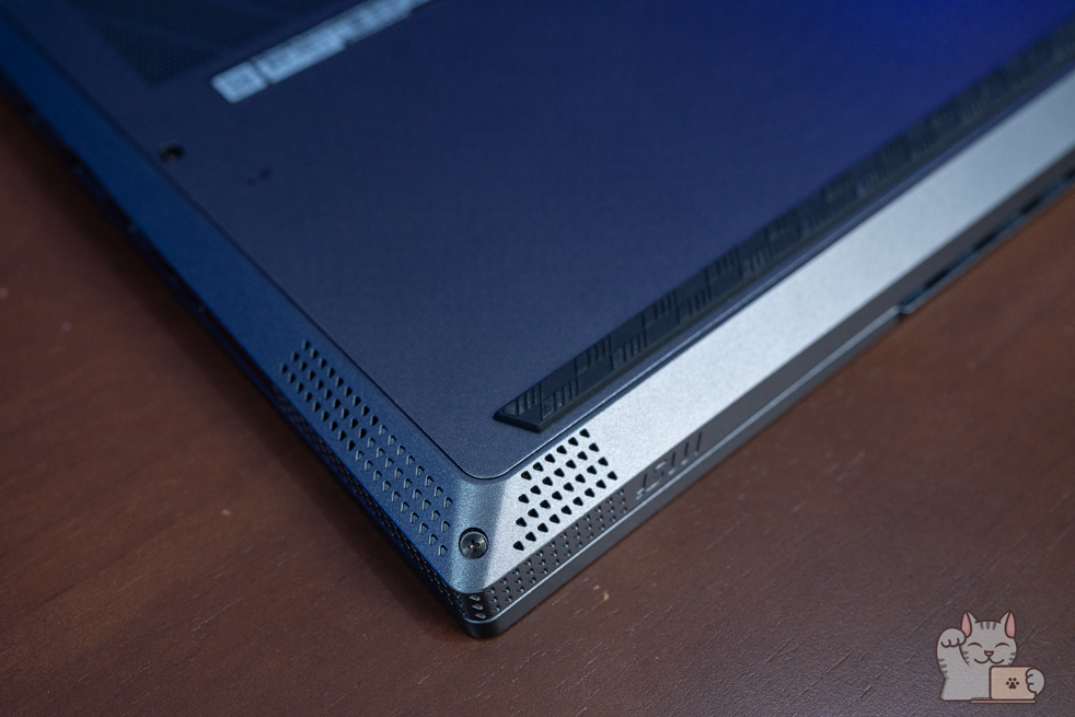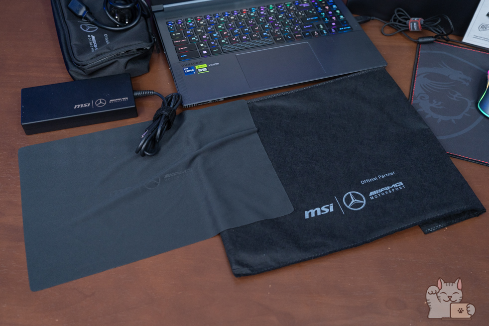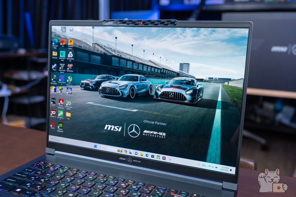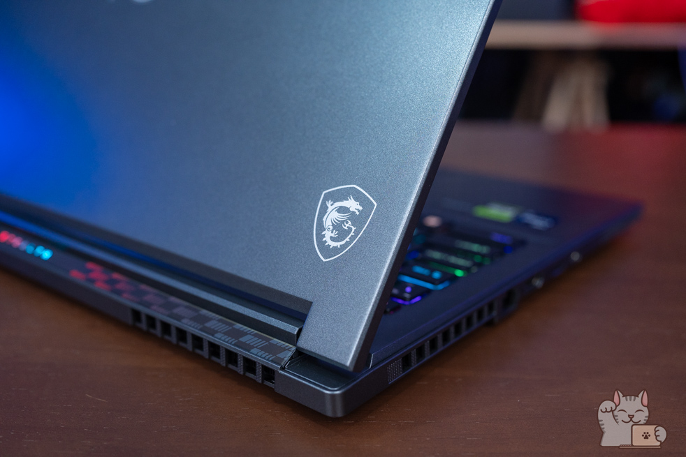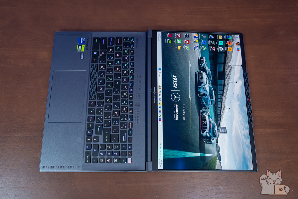 ที่สำคัญยังมีรายละเอียดอื่นๆ ทั้งไฟด้านหลังตัวเครื่อง และโลโก้ MSI x Mercedes-AMG อยู่หลายตำแหน่งของเครื่องถ้าฝาหลังด้านใน ส่วนขอบหน้าจอมุมซ้ายขวาก็มี AMG ที่ด้านซ้าย และ MSI ที่มุมขวา ให้ความแตกต่างจาก MSI Notebook รุ่นอื่นๆ อีกด้านฐานล่างตัวเครื่องดูแล้วเป็นหนึ่งด้วยกับตัวเครื่องกับงานประกอบที่เรียบร้อย พร้อมมียางรองช่วยยกตัวเครื่องให้สูงขึ้น ช่วยส่งมวลลมเย็นถูกดูดเข้าช่องลมขนาดใหญ่ได้มากขึ้นส่งผลให้มีประสิทธิภาพในการระบายความร้อนที่ดี สมกับเป็น Notebook รุ่นระดับบนรุ่นพิเศษของแบรนด์