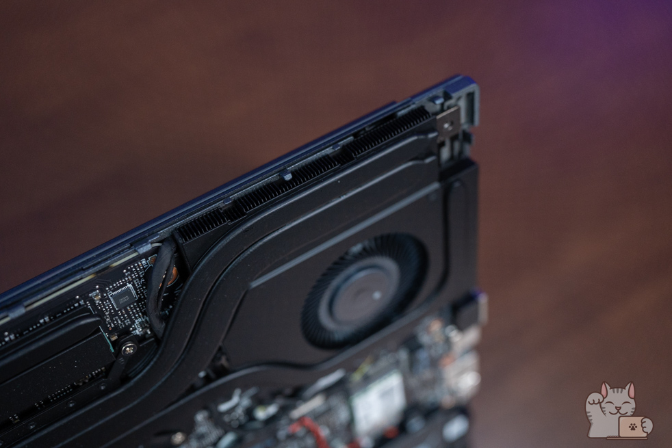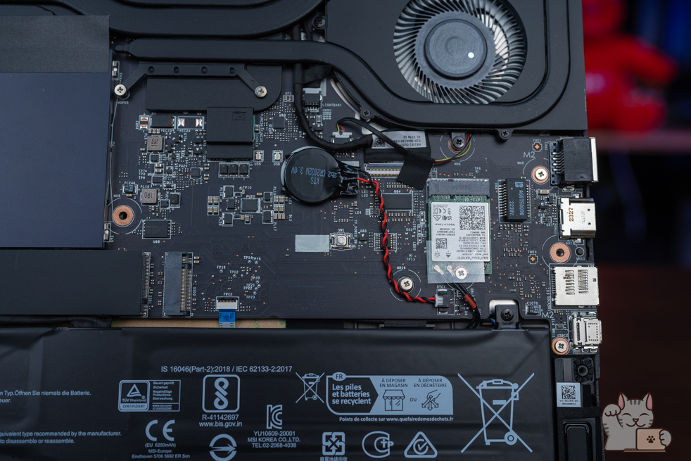 ในส่วนของระบบระบายความร้อนก็จะเป็นระบบ Cooler Boost 5 ซึ่งเน้นในเรื่องของทิศทางการไหลเวียนเข้าออกของลมที่ดีขึ้นกว่าปกติทั่วไป โดยจะมีช่องระบายความร้อนทั้งหมดถึง 4 ช่อง เป็นด้านหลัง 2 ด้านข้างซ้ายและขวาอีก 2 ช่อง พร้อม Heat Pipe แบบใหม่ที่บางพิเศษ จำนวน 5 เส้นที่มีการเชื่อมต่อกัน ส่งผลในการใช้งานแบบ Full Load ทำได้อย่างเสถียรภาพสูง ซึ่งการแกะฝาล่างของ MSI Notebook สามารถทำได้ โดยที่ไม่ต้องกังวลว่าประกันจะหลุดแต่อย่างใด ขอแค่ว่าอย่าแกะจนเกิดความเสียหายก็พอ รวมไปถึงการใส่กลับด้วย