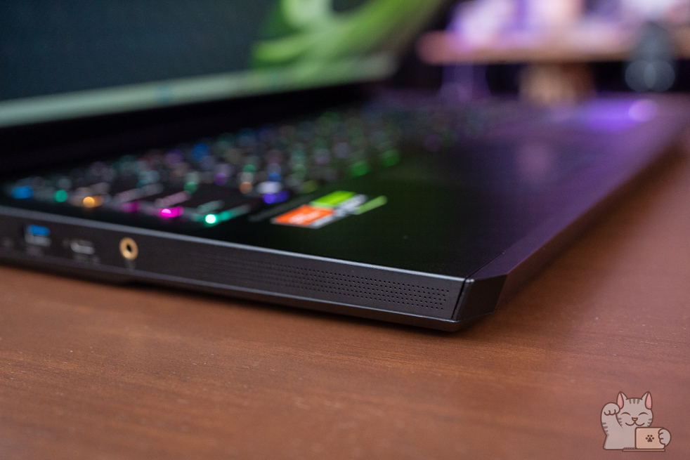 ระบบเสียงก็น่าประทับใจไม่แพ้กัน ด้วยลำโพงคุณภาพดีทำงานแบบ 2 ตัว 2W ติดตั้งด้านข้างตัวเครื่อง โดยมีซอฟแวร์ปรับแต่งเสียงอย่าง Nahimic สามารถปรับแต่งได้ ให้คุณภาพเสียงที่ดี คุณภาพเสียงเบสให้แน่นลึกยิ่งกว่าโน๊ตบุ๊คทั่วไปเล็กน้อย พร้อมด้วยการใช้ระบบเสียง Hi-Res Audio เพิ่มอรรถรสในการเล่นเกมให้ถึงใจยิ่งขึ้น จากการที่เสียงกลางแหลมออกชัดเจนดี ส่วนทุ้มมีออกมาหน่อยๆ ส่วนในเรื่องคุณภาพเสียงนั้นถือว่าดีทั้งเรื่องคุณภาพและความดัง เทียบราคาแล้วถือว่าใช้ได้