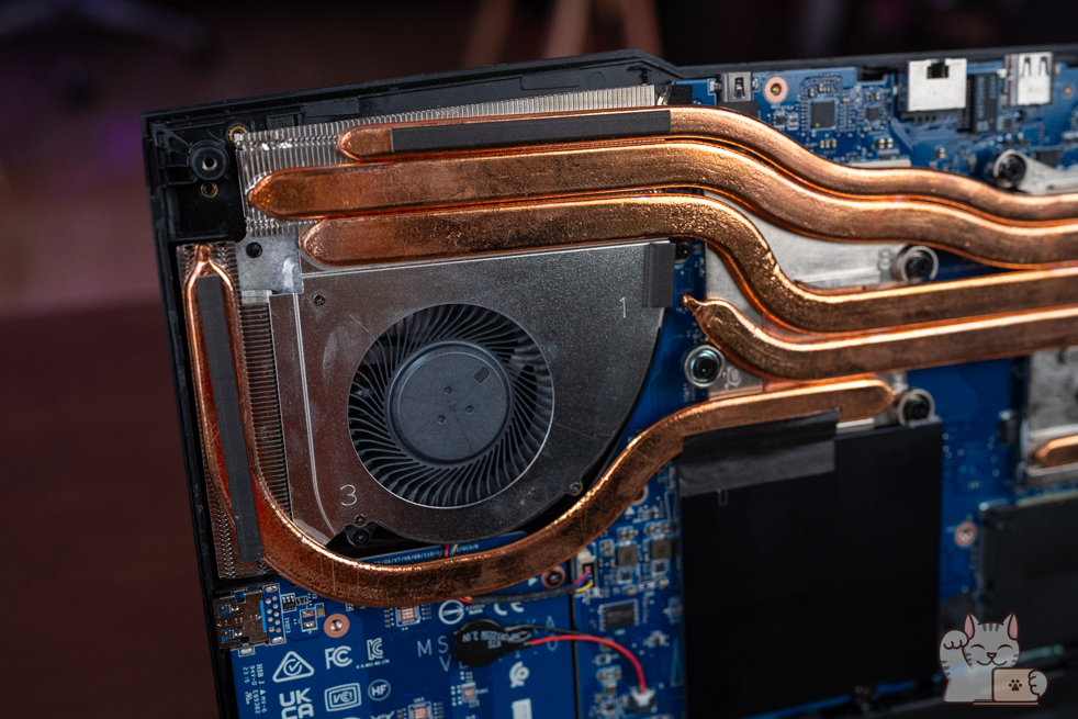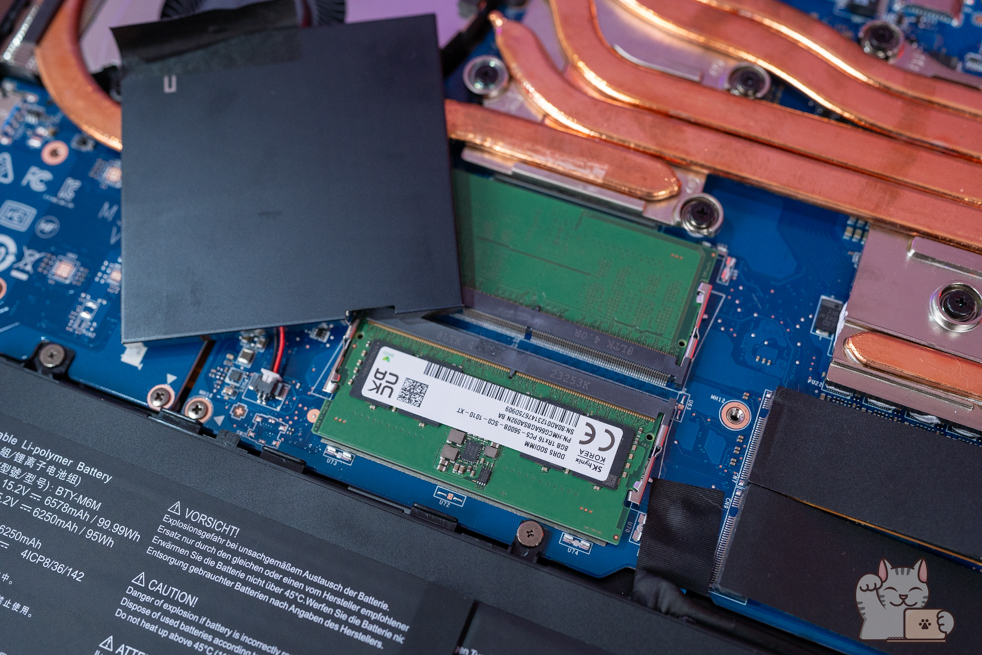 พร้อมเห็นว่าช่องติดตั้งหน่วยความจำแรมที่ใส่มาแล้วขนาด 8GB DDR5 x 2 แถว ใส่เต็มมาแล้วที่ 64GB แน่นอนว่าเป็นแบบ SO-DIM พร้อมมีฝาครอบ รวมไปถึงยังมีที่เก็บข้อมูลแบบ SSD M.2 NVMe PCIe Gen 4 แบบ 1TB และมีช่อง SSD ว่างอีก 1 Slot ที่ต้องบอกว่าสำหรับการใช้งานทั่วไปเหลือเฟือมากๆ นับได้ว่าเป็น Gaming Notebook อีกรุ่นในตลาดที่รองรับการอัปเกรดเพิ่มได้ อย่างแรมจะเป็นขนาด 32GB และ SSD ก็สามารถเพิ่มได้ทันทีอีก 1TB โดยที่ไม่ต้องถอดของเดิมแต่อย่างใด