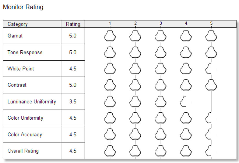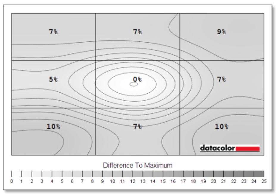 ส่วนอื่นๆ ของการทดสอบหน้าจอในด้านต่างๆ ได้ความสว่างหน้าจอสูงสุดอยู่ที่เกือบๆ 400 nit ซึ่งจัดได้ว่าอยู่ในเกณฑ์ดีกว่ามาตรฐานความสว่างของหน้าจอในโน้ตบุ๊คทั่วไปกว่า 1 – 2 เท่า ส่วนค่าความสม่ำเสมอในการความสว่างทั้งหน้าจอโดยแบ่งออกเป็น 9 ช่อง ก็จะเห็นว่ามีความสว่างที่แตกต่างกันเล็กน้อย สูงสุดที่ 10% เท่านั้น อีกทั้งค่าคลาดสี Delta-E ก็เฉลี่ยแล้วต่ำกว่า 1 ซึ่งดีมากๆ ปิดท้ายกับคะแนนรวมของทุกๆ การทดสอบก็จะอยู่ที่ 4.5 เรียกว่าเป็น Gaming Notebook ที่คุณภาพสูงมาก