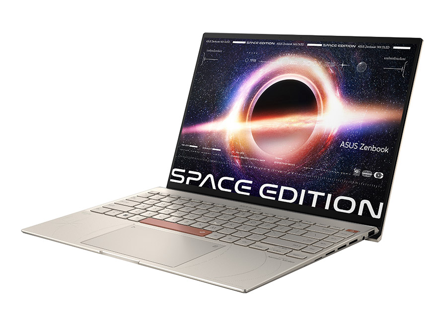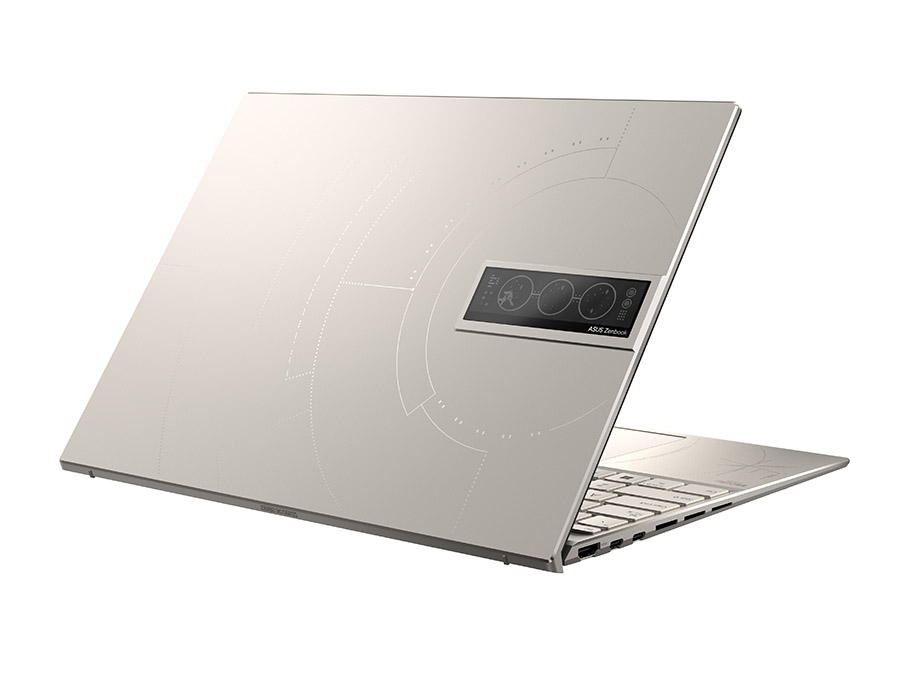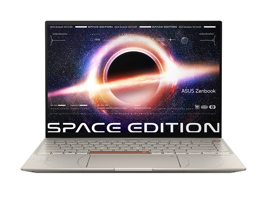 โน้ตบุ๊กขนาด 14 นิ้ว ได้รับการออกแบบด้วยแรงบันดาลใจจากสถานีอวกาศ และการออกแบบรหัสมอร์ส ฉลองครบรอบ 25 ปีที่เอซุสได้ส่งโน้ตบุ๊กตัวแรก P6300 ขึ้นอวกาศสำหรับภารกิจที่สถานีอวกาศเมียร์ MIR ตัวเครื่อง ทำจากอลูมิเนียมอัลลอย และเคลือบด้วยสี Zero-G ไทเทเนียม พร้อมด้วยดีไซน์รหัสมอร์สบริเวณฝาเครื่อง โดยลายเส้นบนฝาเครื่องเป็นสัญลักษณ์ของแคปซูลอวกาศ รวมถึงลายรหัสมอร์สในภาษาละติน ‘Per aspera ad astra’ มีความหมายว่า ‘ผ่านความยากลำบากสู่ดวงดาว’ ตัวเครื่องทนทานในระดับ Space Grade มาพร้อมหน้าจอสัมผัส 4K OLED อัตราส่วน 16:10 แสดงข้อมูลบนพื้นที่หน้าจอเพิ่มขึ้น มาพร้อม ZenVision Display จอขนาด 3.5″ OLED บริเวณฝาเครื่อง สามารถเลือกปรับจอได้ตามโหมดการใช้งานของ MyASUS สามารถเลือกตั้งค่าการแจ้งเตือน ให้แสดงผลเวลา วันที่ และอายุแบตเตอรี่ โดยจอยังสามารถแสดงผลนามบัตร ข้อความแอนิเมชั่นและข้อความตามชอบ สามารถใช้งานด้านบันเทิงได้อย่างลงตัว